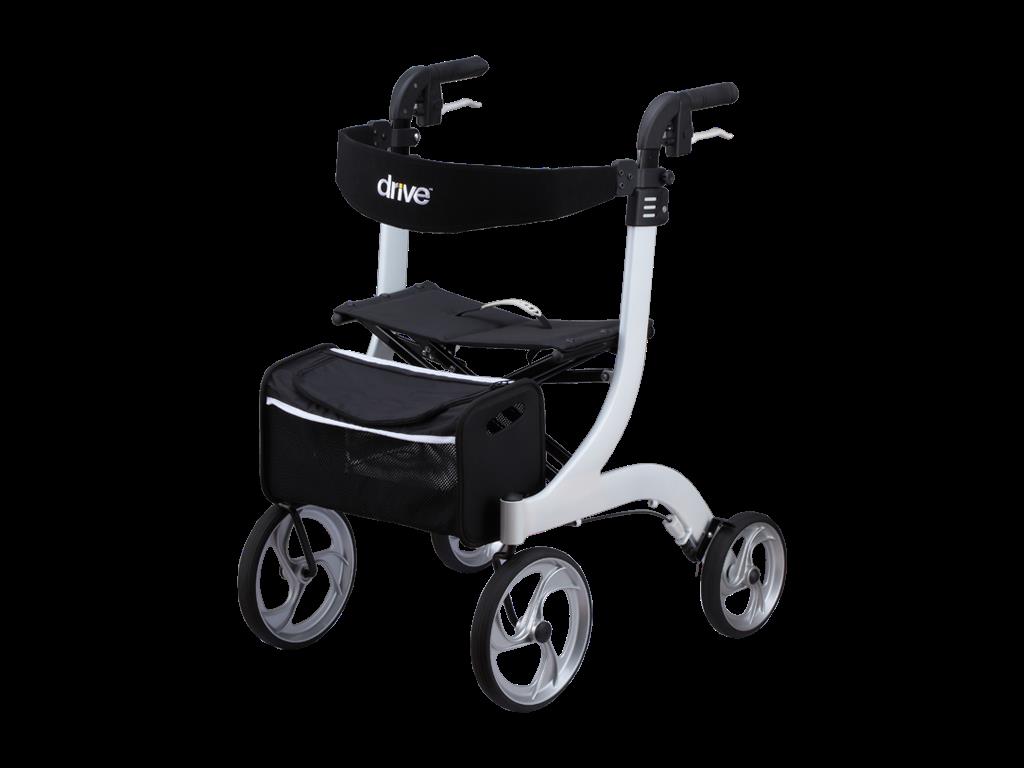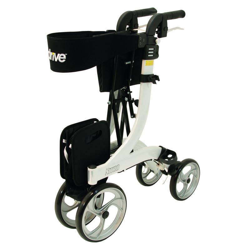 Rollator NITRO M m.Stockhalter,u.Stoff/Netztasche,weiß,Gesamtbreite 61 cm | Gesamthöhe 84 bis 96,5 cm | Sitzbreite 44,5 cm | Sitztiefe 22 cm | Sitzhöhe 57 cm | Faltmaß Höhe 86 cm | Gesamtgewicht 7,2 kg.(724...) Mobilität für den Innen- und Außenbereich.