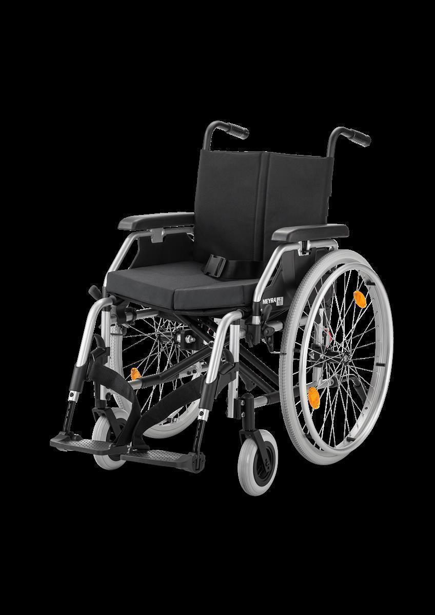 Produktdetails: verlängerter Anpassrücken | Sitz- und Rückengurt gepolstert | Seitenteil höhenverstellbar, hochklappbar, abschwenkbar und abnehmbar | Armlehnenpolster tiefenverstellbar | Kniehebelbremse | Greifreifen Aluminium | Beinstützen abnehmbar und wegschwenkbar | Fußstützen winkelverstellbar mit Einzelwadengurten | pannensichere PU-Bereifung, | Sitzkissen | Radstandsverlängerung | Haltegurt | Stockhalter | passive Beleuchtung | Stützrollen | inkl. Steckachse und Trommelbremse.