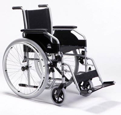 Produktdetails: abnehmbare, abklappbare Armlehnen | abnehmbare Beinstützen mit Wadenband | Vorderradgabel mit 2 Aufnahmen | PU-Bereifung 24 x 1 3/8 und 200 x 50 | flexibler Sitz und Rücken mit Schaumstoffinlay | mit Trommelbremse und Steckachse.