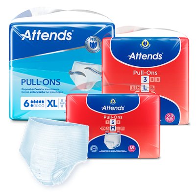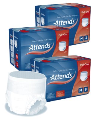 bei mittlerer Harninkontinenz | Bauch- /Hüftumfang 130 bis 170 cm | VE 4 x 14 Stück.Die Attends Pull-Ons sind weiche und diskrete saugfähige Einmalhosen mit dem Tragegefühl von Unterwäsche.