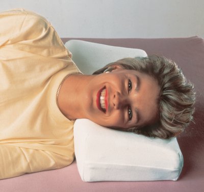 (24082...) Das anatomisch geformte Kopfkissen stützt in der Rückenlage den Nacken und entlastet in der Seitenlage die Schulter.