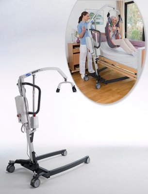 Der mobile Patientenlifter für beengte Räumlichkeiten ist besonders leicht und daher noch einfacher zu transportieren und aufzubewahren.