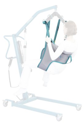 Produktdetails: kompakter Zuschnitt und großer Ausschnitt im Rückenteil | Unterkörper bleibt im Gesäßbereich frei | Auspolsterung unter den Armen | praktische Griffschlaufe an der Außenseite unterstützt den Pflegenden.