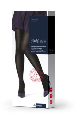 Gilofa Style ist ein kompressiver Vitalstrumpf mit brillantem Glanz. Perfekt für die modebewusste Frau.