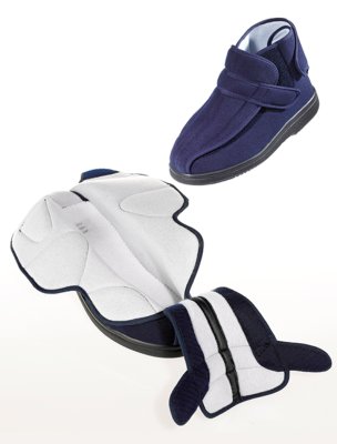 Produktdetails: weit zu öffnende Verschlusstechnik im Vorfußbereich | Fersenklett für leichten Einstieg | ideal für geschwollene Füße, Hammerzehen, Einsatz nach Operationen und Gipsverbänden | Obermaterial Polyethylen-Velours, abwaschbar | Cosy-Fit-Futter | SoftStep Sohlenkonzept | SuperComfort-Sohle | Weichschaumeinlage.