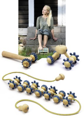 Produktdetails: bei Muskelverspannungen | Verbesserung der Durchblutung | verbessert die Lymphzirkulation | aus Buche geölt | Massageaufsätze phthalatfreies PVC | VE 1 Stück.
