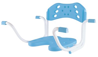 Produktdetails: mit Rückenlehne und Hygieneausschnitt | Sitzfläche und Rücklehne aus Kunststoff | Sitz und Rücken mit Wasserablauföffungen | Seitenteile auf Wannenbreite einstellbar.