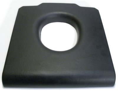 Weichsitzauflage aus weichem PU. Für Toilettenstühle der Fabrikate Bischoff & Bischoff, Days Healthcare, Dietz, Invacare, Rebotec, Thuasne, Vermeiren, u.a. Farbe schwarz. VE 1 Stück.